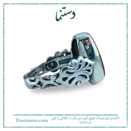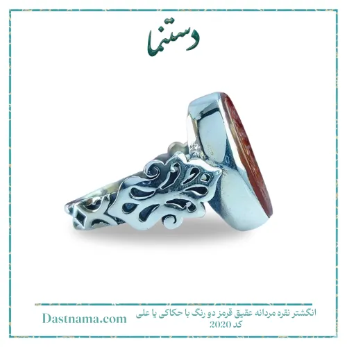 بررسی قیمت انگشتر نقره مردانه عقیق قرمز دو رنگ با حکاکی یا علی کد 2020