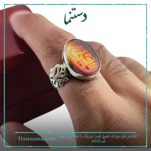 نکات نگهداری از انگشتر نقره مردانه عقیق قرمز دو رنگ با حکاکی یا علی کد 2020