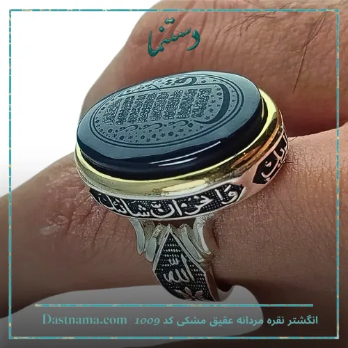 انگشتر نقره مردانه عقیق مشکی کد 1009 تلفیقی از اصالت، هنر دست ساز و ظرافت طراحی است. این محصول با جنس نقره با عیار استاندارد و سنگ عقیق مشکی طبیعی با تراش مستطیلی، جلوه ای فاخر و کلاسیک به دستان شما می بخشد. حکاکی استادانه «چهار قل» در دور نگین، ارزش معنوی و هنری انگشتر را دوچندان کرده است. با سایزهای متنوع از 58 تا 68 این انگشتر برای تمامی علاقه مندان به جواهرات مردانه دست ساز و سبک کلاسیک مناسب بوده و انتخابی ایده آل برای استفاده روزمره و مجالس رسمی به شمار می رود.