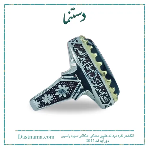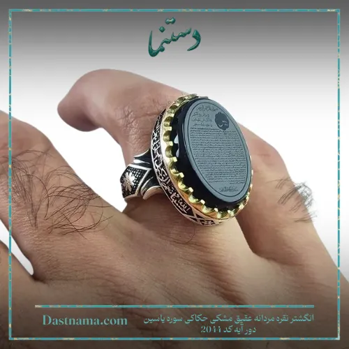 مشخصات انگشتر نقره مردانه عقیق مشکی حکاکی سوره یاسین دور آیه کد 2044