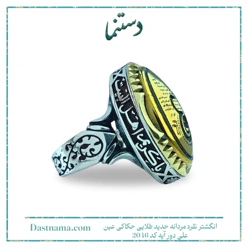 انگشتر نقره مردانه حدید طلایی حکاکی عین علی دور آیه کد 2046 در طیف گسترده ای از موقعیت ها جلوه ای چشم گیر دارد: