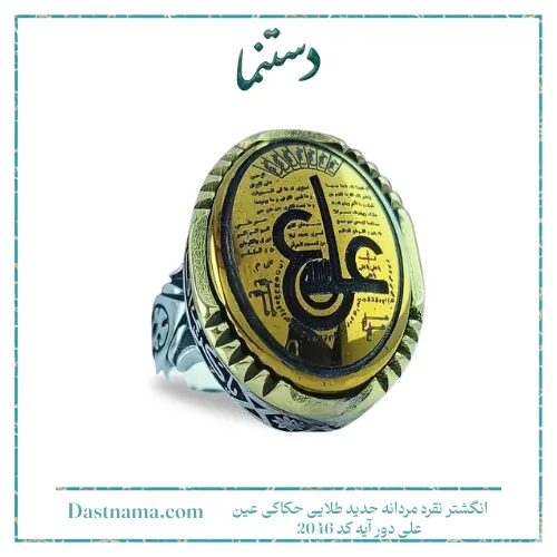 | نام محصول | انگشتر نقره مردانه حدید طلایی حکاکی عین علی دور آیه کد 2046 |